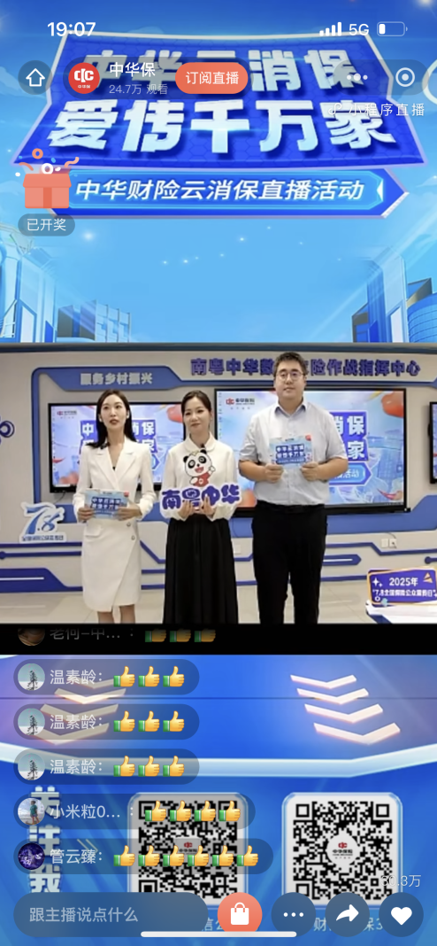 中華財(cái)險(xiǎn)廣東分公司結(jié)合“7.8 全國(guó)保險(xiǎn)公眾宣傳日”,創(chuàng)新開(kāi)展消保主題直播,講解消費(fèi)者權(quán)益保護(hù)知識(shí),圍繞理賠、投訴處理等熱點(diǎn)問(wèn)題答疑解惑,累計(jì)吸引超萬(wàn)人次觀(guān)看。分公司下轄機(jī)構(gòu)同步進(jìn)行轉(zhuǎn)發(fā)和推廣,擴(kuò)大宣傳覆蓋面,提升公眾維權(quán)意識(shí)。