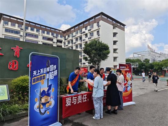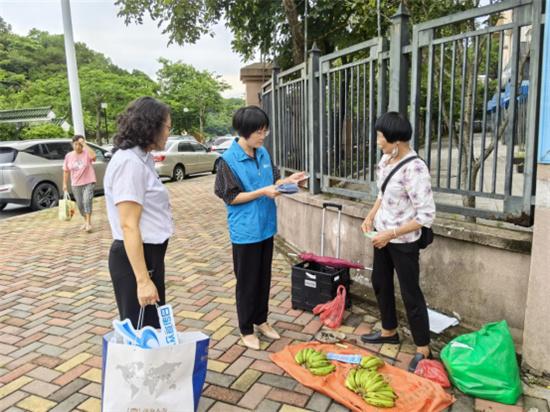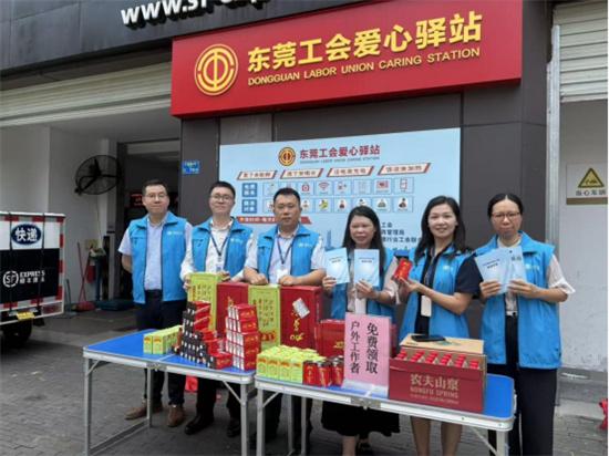 在東莞市匯峰中心,前海人壽東莞分公司的志愿者搭建起服務(wù)站點,為環(huán)衛(wèi)工人、快遞員、外賣員等戶外工作者送上清涼飲品,同時結(jié)合宣傳材料講解電信詐騙手法和防范要點,在送上夏日關(guān)懷的同時有效提升群眾金融風(fēng)險防范意識。