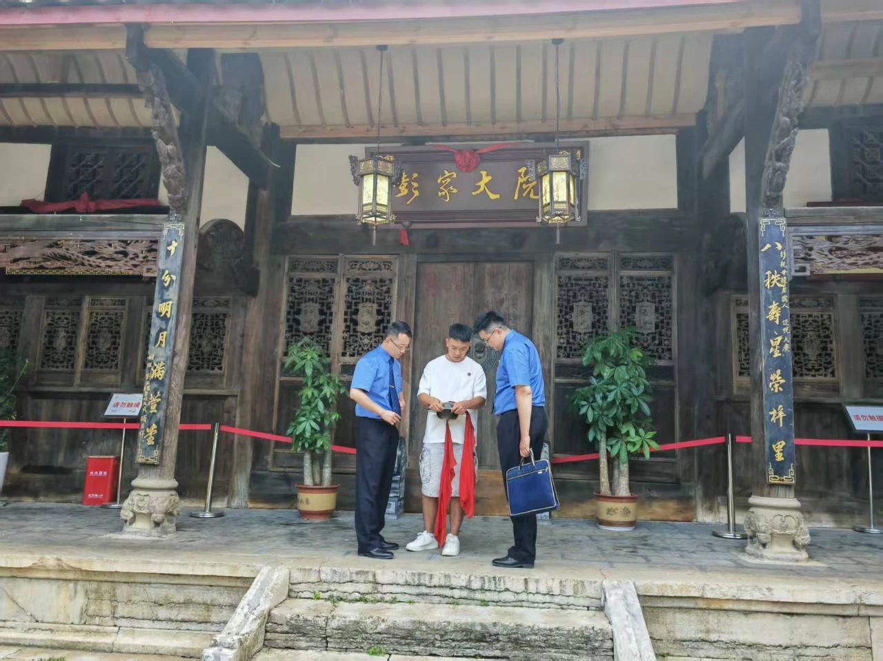 據(jù)悉,彭氏民居始建于晚清時(shí)期,原為當(dāng)?shù)嘏硎霞易寰劬又?。該建筑整體較高,為上下兩層結(jié)構(gòu),廂房上層設(shè)有拼花欄桿,欄桿內(nèi)嵌有文字。一層窗欞均為精雕之作,現(xiàn)存部分已遭損毀。建筑三面設(shè)有階梯及外走廊,木柱下方的柱礎(chǔ)石工藝精美,院壩旁的石坎上亦有石刻圖案。因其建筑結(jié)構(gòu)獨(dú)特,具有較高歷史價(jià)值,于2016年1月被公布為市級(jí)文物保護(hù)單位。2023年8月,“金益求精”辦案團(tuán)隊(duì)在工作中發(fā)現(xiàn),這座百年民居因無人看管,多處屋頂出現(xiàn)漏洞,門窗破損、雕花遺失,文物面臨著嚴(yán)重的損毀風(fēng)險(xiǎn)。
