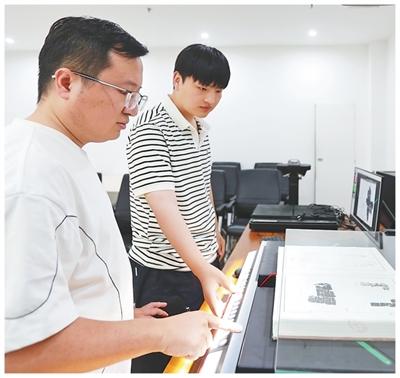 實驗室內(nèi),張展(左)正在和學(xué)生掃描錄入甲骨文拓本。 霍亞平攝