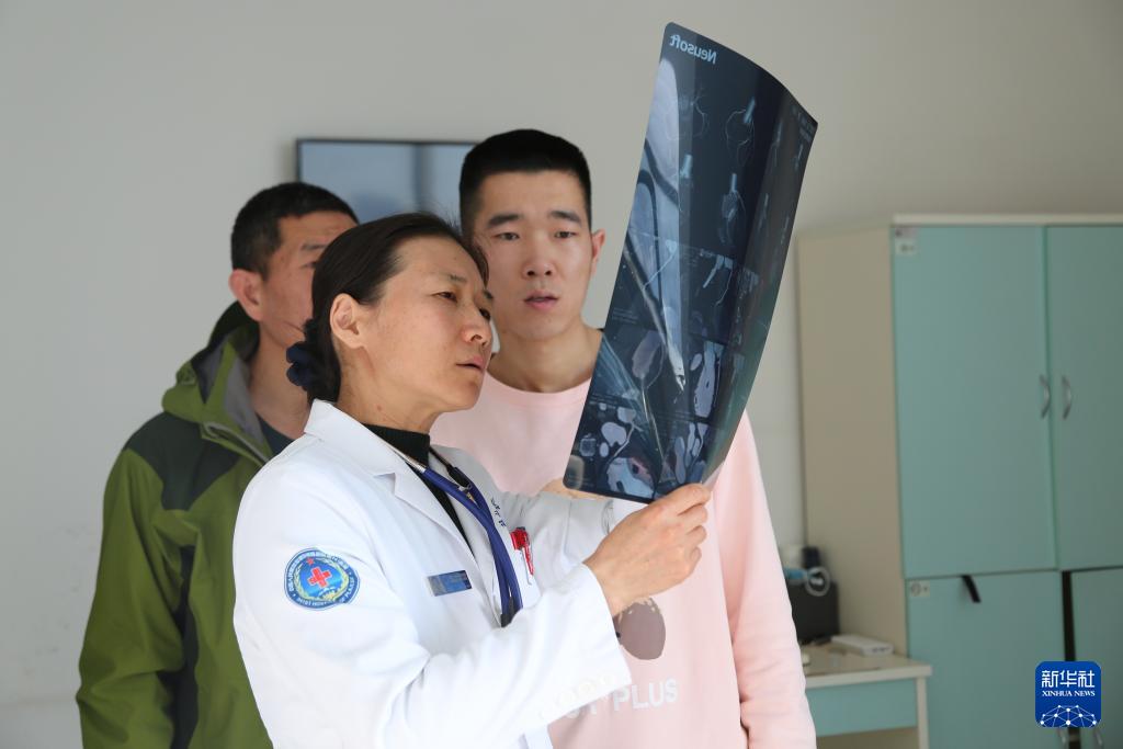 聯(lián)勤保障部隊第941醫(yī)院重癥醫(yī)學科主任張瑛(右)在邊防哨所巡診(2022年3月20日攝)。新華社發(fā)(孟釗 攝)