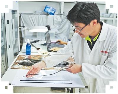 簡牘發(fā)掘、保護(hù)和修復(fù)是一場與時(shí)間的賽跑?!皠偝鐾恋闹窈嗆浀孟衩鏃l,非常脆弱,接觸空氣后極易氧化變黑,可能導(dǎo)致文字瞬間消失?!笔Y魯敬說,在龍會(huì)河楚墓發(fā)掘中,他們采用“整體提取法”:以薄塑料板作“手術(shù)刀”,木托板為“擔(dān)架”,將整堆簡牘托起,并快速送往荊州文物保護(hù)中心。
