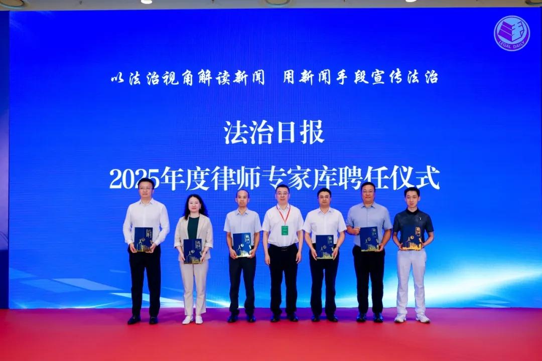 法制日報社黨委委員、副總編輯張國慶為天達(dá)共和律師事務(wù)所合伙人趙舒杰,天達(dá)共和律師事務(wù)所合伙人馬紅海,瀛和律師事務(wù)所律師胡青春,功承瀛泰(北京)律師事務(wù)所高級合伙人才帥童,吉林良佐律師事務(wù)所主任尤金堂,江蘇萬謀律師事務(wù)所主任上官丙權(quán)頒發(fā)聘書。