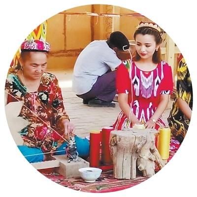 除了2006年入選國(guó)家級(jí)非物質(zhì)文化遺產(chǎn)名錄的維吾爾族桑皮紙制作技藝,三個(gè)橋村的非遺還有土產(chǎn)絲綢——艾德萊斯綢。魯克沁鎮(zhèn)黨委副書(shū)記卡特·阿不力米提表示:“艾德萊斯意思是‘扎染’,這種絲綢采用我國(guó)古老的染色工藝,染料是天然的植物和礦物,染好后將絲曬干,之后就可以進(jìn)行絲綢織制,艾德萊斯綢衣物是維吾爾族女性在重大節(jié)日和盛典中的首選服飾?!?008年,新疆維吾爾族艾德萊斯綢織染技藝入選國(guó)家級(jí)非物質(zhì)文化遺產(chǎn)名錄。如今,游客在三個(gè)橋村就能近距離觀看艾德萊斯綢的制作過(guò)程。