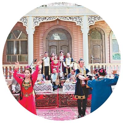 其中的吐魯番木卡姆節(jié)奏歡快、內(nèi)容豐富,唱詞多隨民歌、詩(shī)歌而來(lái),是多年來(lái)人們對(duì)生活經(jīng)驗(yàn)、文學(xué)藝術(shù)等的積累?!巴卖敺究窡o(wú)鼓不歌、無(wú)舞不樂(lè)的藝術(shù)特色是古代高昌及高昌回鶻汗國(guó)的音樂(lè)遺風(fēng),而魯克沁鎮(zhèn)正是吐魯番木卡姆的重要發(fā)源地。”依力·木合買提介紹。