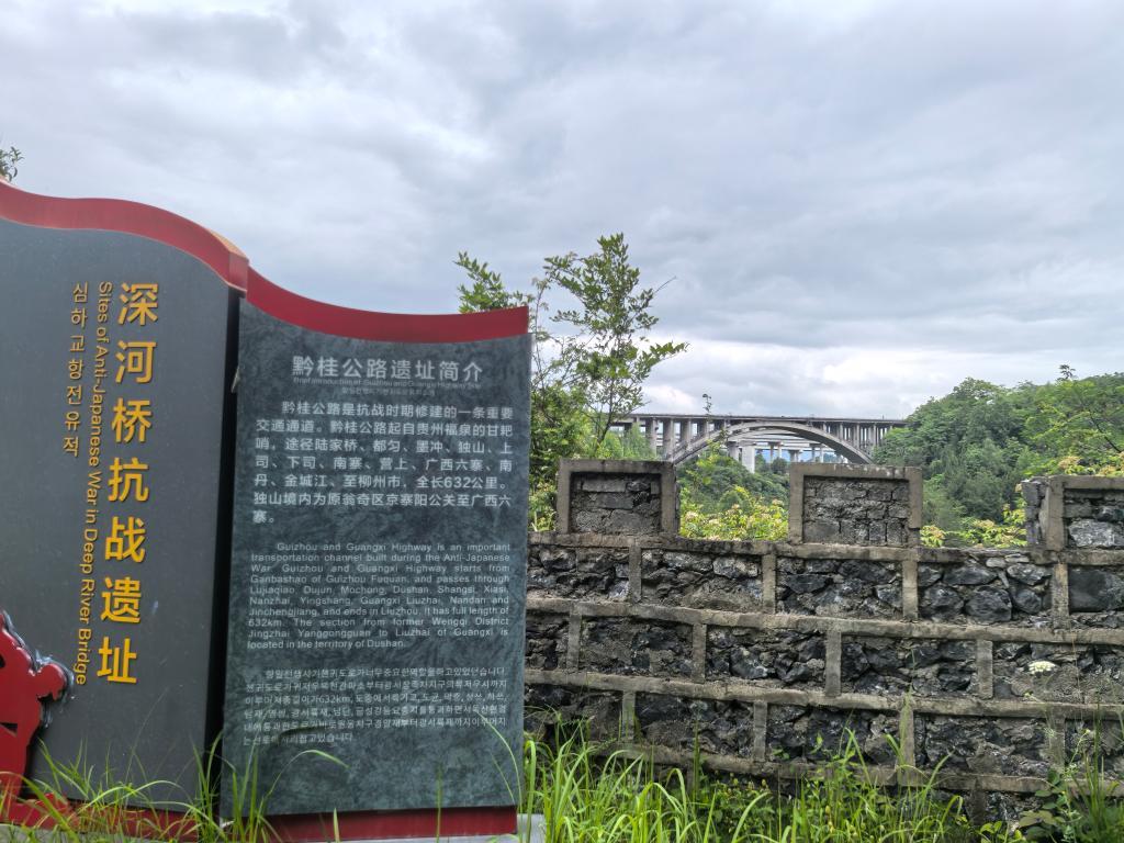 如今,被炸斷的深河橋橋墩掩映在樹林間,默默訴說著歷史;一旁重建的深河橋,已是210國道上的重要橋梁。站在深河橋抗戰(zhàn)遺址上遠眺,G75蘭海高速上的深河大橋與獨山前往都勻的都獨同城大道凌空飛架,橫亙在青山綠水間……交通設(shè)施的滄桑巨變,見證著獨山人民奔向幸福生活。