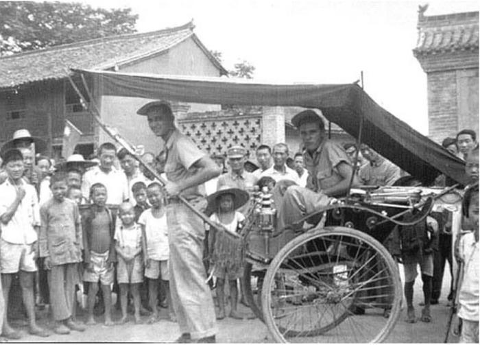 美國飛行員在漢中街頭拉黃包車。(資料圖)漢中市檔案館供圖