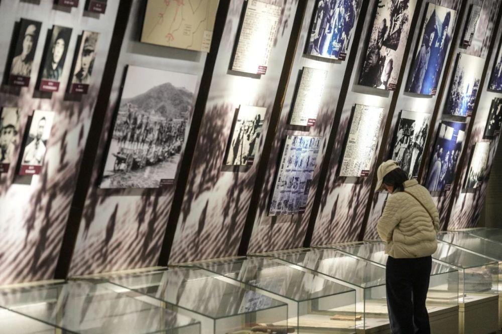 參觀者在遼沈戰(zhàn)役紀(jì)念館內(nèi)參觀(4月1日攝)。遼沈戰(zhàn)役紀(jì)念館收藏了穆青同志采寫(xiě)的《東北抗日聯(lián)軍斗爭(zhēng)史略》。新華社記者潘昱龍攝