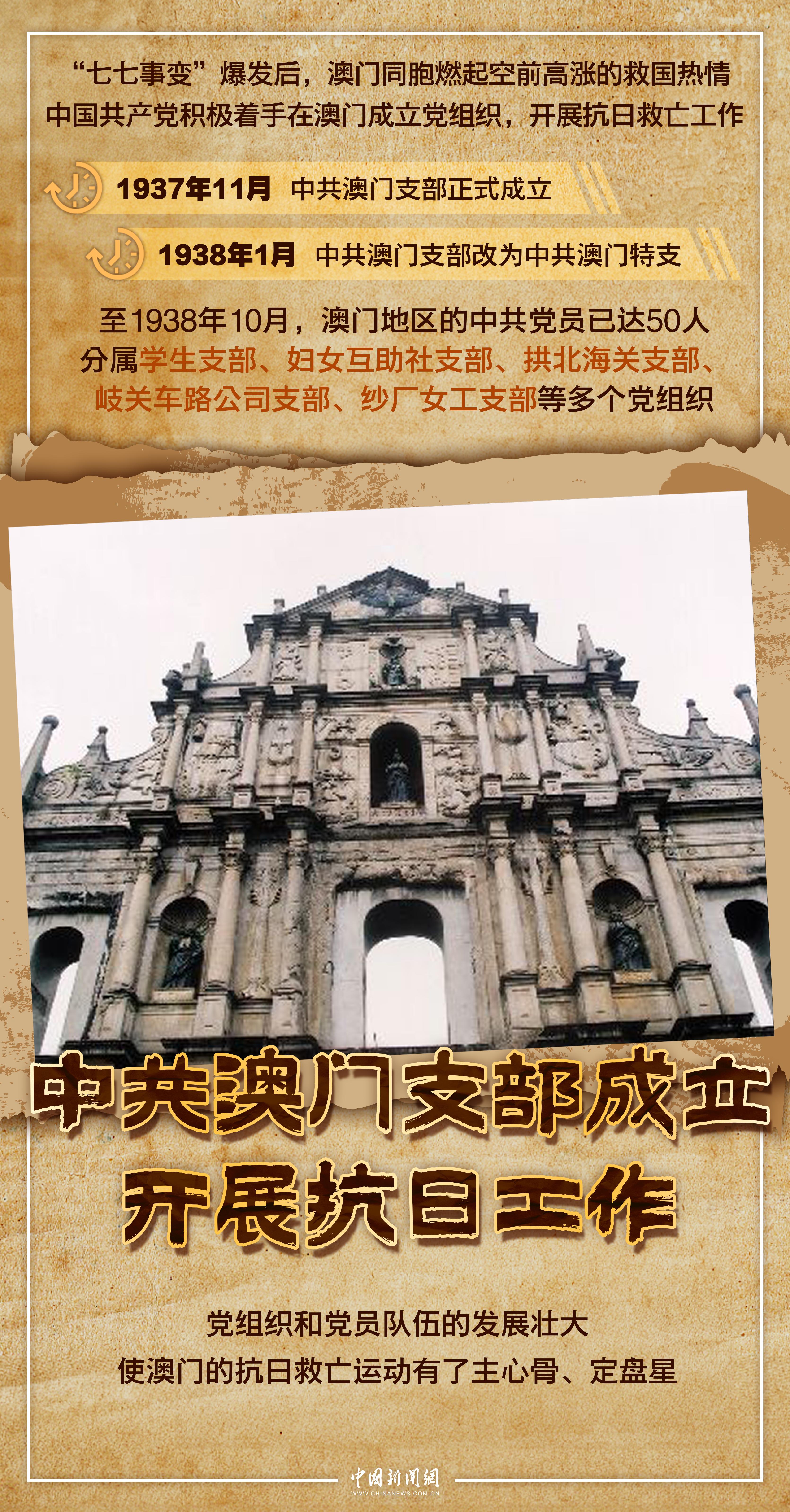 中新網(wǎng)北京8月21日電 2025年是中國人民抗日戰(zhàn)爭暨世界反法西斯戰(zhàn)爭勝利80周年??箲?zhàn)時期,港澳同胞心系祖國,以多元方式投身救國事業(yè)。香港憑借特殊的地理環(huán)境和政治環(huán)境,成為抗戰(zhàn)物資輸送樞紐;東江縱隊港九獨立大隊靈活開展敵后游擊戰(zhàn)爭;營救愛國民主人士和文化界人士等。與此同時,中國共產(chǎn)黨積極著手在澳門成立、擴(kuò)大黨組織,成為澳門同胞抗日救亡運動的可靠主心骨。