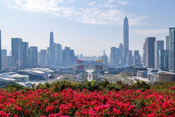 從深圳蓮花山山頂俯瞰城市中軸線(2025年1月29日攝)。新華社記者 梁旭 攝