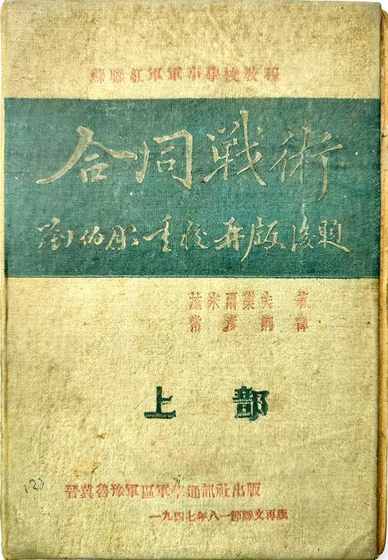 《合同戰(zhàn)術(shù)》,蘇聯(lián)紅軍軍事學(xué)校教程,系統(tǒng)論述多兵種戰(zhàn)斗特性和協(xié)同作戰(zhàn),是劉伯承等人著眼于人民軍隊(duì)未來(lái)戰(zhàn)術(shù)的發(fā)展,在戰(zhàn)斗間隙精心翻譯出來(lái)的。