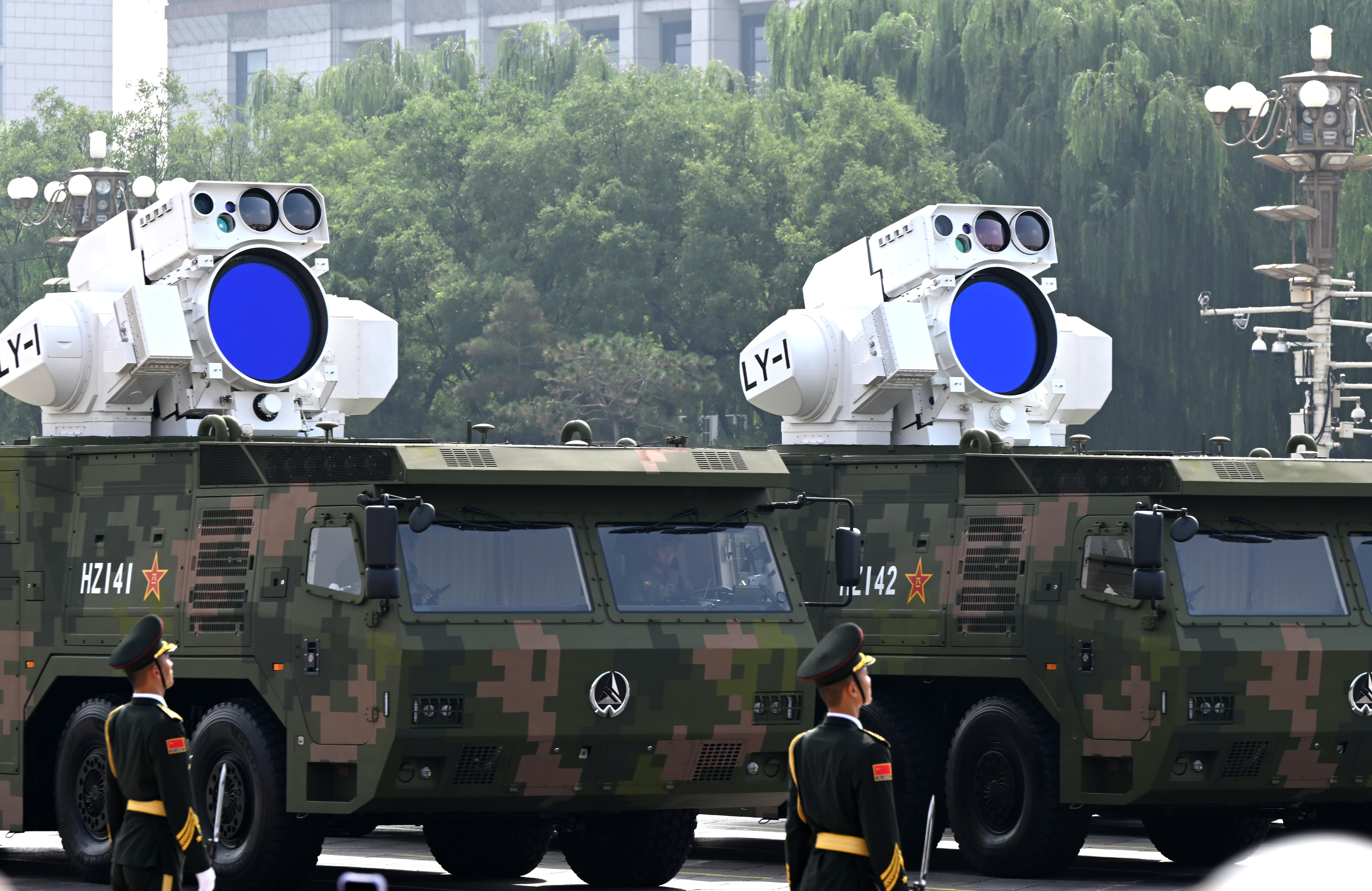 最后一個(gè)出場(chǎng)的是低空戰(zhàn)場(chǎng)、密織火網(wǎng)的反無(wú)人機(jī)方隊(duì)。受閱的反無(wú)彈炮系統(tǒng)、高能激光武器、高功率微波武器等成體系建設(shè),既能軟殺傷,又能硬摧毀,是反制無(wú)人機(jī)的“鐵三角”。