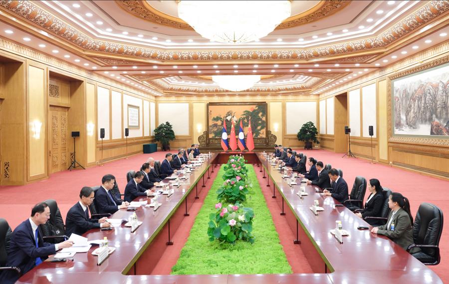 習(xí)近平強(qiáng)調(diào),當(dāng)前國際和地區(qū)形勢(shì)發(fā)生復(fù)雜深刻變化,雙方要以長遠(yuǎn)眼光和戰(zhàn)略思維看待和把握中老關(guān)系,在涉及彼此核心利益和重大關(guān)切問題上堅(jiān)定相互支持。要以明年兩國建交65周年為契機(jī),謀劃開展好各領(lǐng)域交往。中方愿同老方深化治黨治國經(jīng)驗(yàn)交流,支持老撾人民革命黨籌備和開好十二大。要以中老鐵路運(yùn)營和沿線開發(fā)為抓手,持續(xù)拓展“黃金大通道”輻射帶動(dòng)效應(yīng),推動(dòng)重點(diǎn)項(xiàng)目提質(zhì)升級(jí)。要深化防務(wù)、執(zhí)法安全等合作,對(duì)跨境賭博、電信網(wǎng)絡(luò)詐騙犯罪等持續(xù)高壓嚴(yán)打。中方祝賀老撾成為上海合作組織對(duì)話伙伴,愿同老方在中國東盟合作、瀾湄合作、東亞峰會(huì)等地區(qū)機(jī)制下深化協(xié)調(diào)和配合,促進(jìn)地區(qū)和平與發(fā)展。