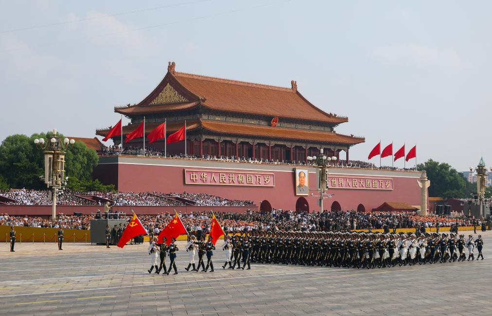 9月3日,紀(jì)念中國人民抗日戰(zhàn)爭暨世界反法西斯戰(zhàn)爭勝利80周年大會在北京隆重舉行。這是國旗護(hù)衛(wèi)隊在行進(jìn)中。新華社記者 魏培全 攝