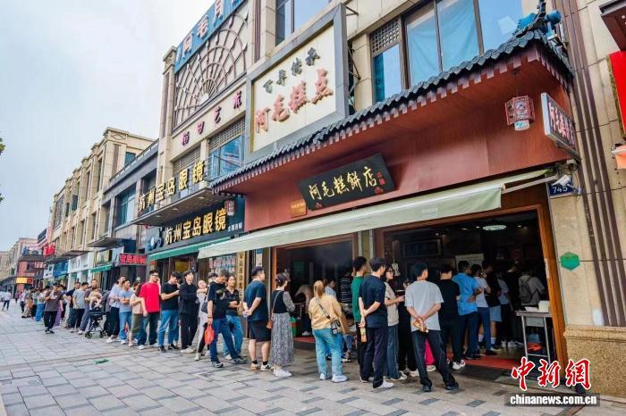 “我們用的是新鮮豬腿肉,烤出的月餅鮮嫩多汁。從早上開門到現(xiàn)在,基本沒歇過?!睏罴芽≌f,“排隊的顧客不少是從蘇州、上海特地開車來的,就為了這口剛出爐的熱乎勁?!?/p>
