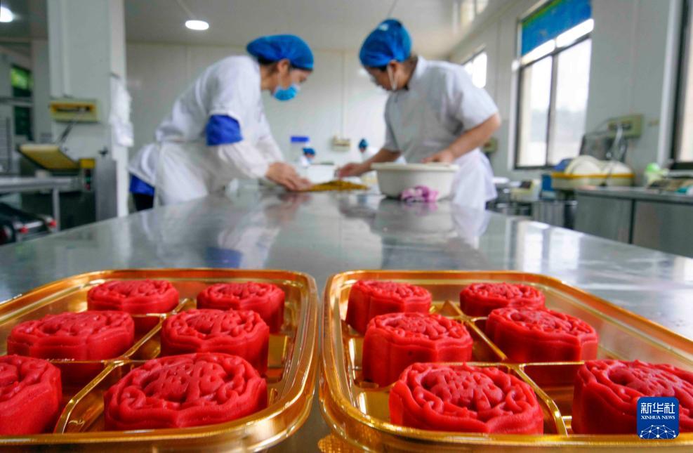 目前,各地加緊制作月餅,供應(yīng)中秋節(jié)日市場。