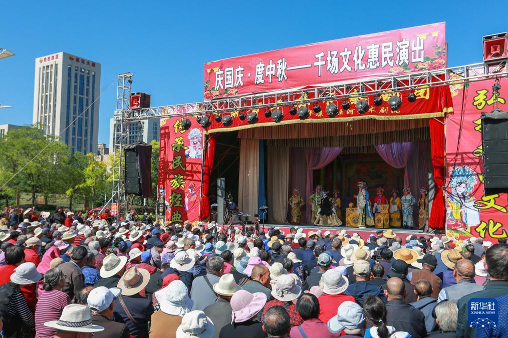 9月24日,在甘肅省平?jīng)鍪芯G地廣場(chǎng),演員在“慶國(guó)慶·度中秋”戲曲文化惠民演出現(xiàn)場(chǎng)表演。