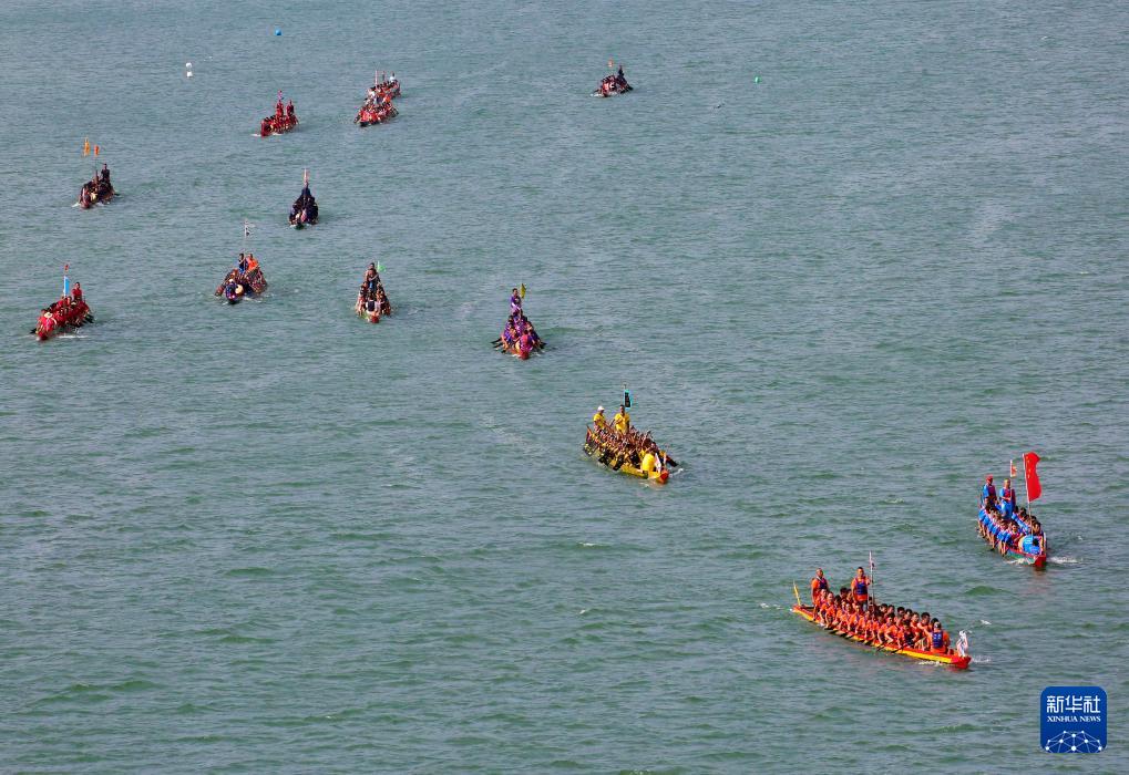 9月24日,在廣西融水苗族自治縣的融江河面上,龍舟隊伍在角逐,喜迎國慶中秋佳節(jié)。