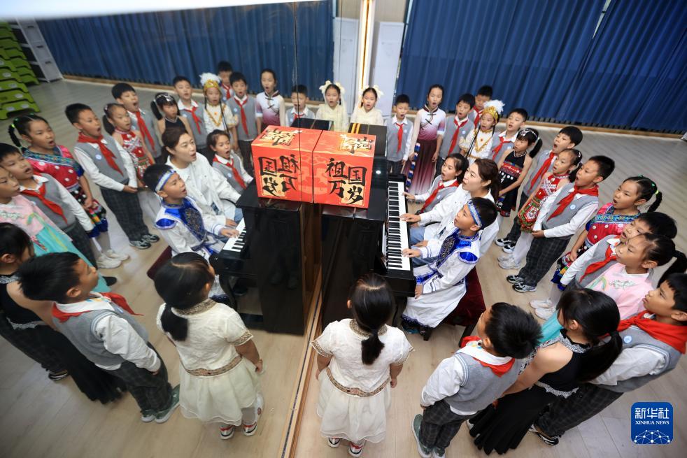 9月25日,在湖北省武漢市,未來實(shí)驗(yàn)小學(xué)師生演奏《我愛你中國》,迎接國慶節(jié)。
