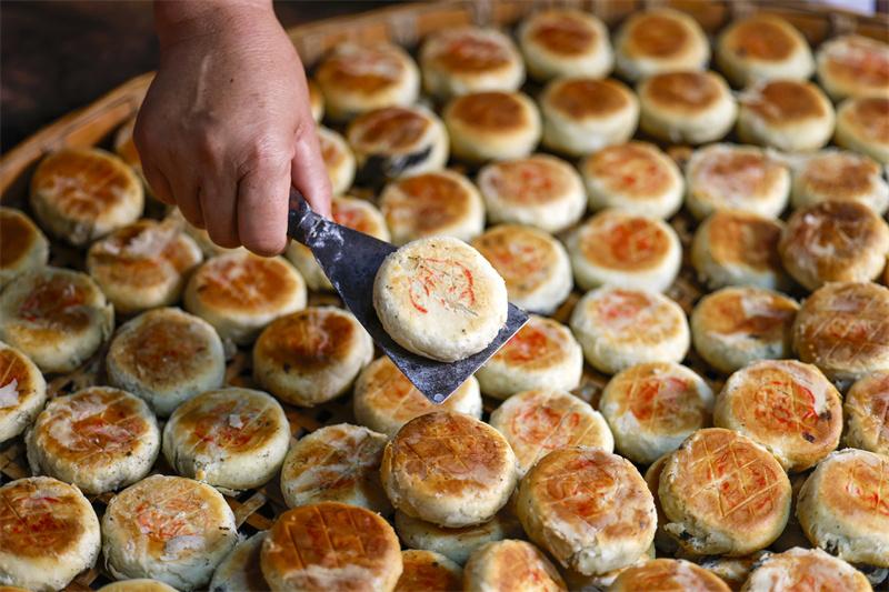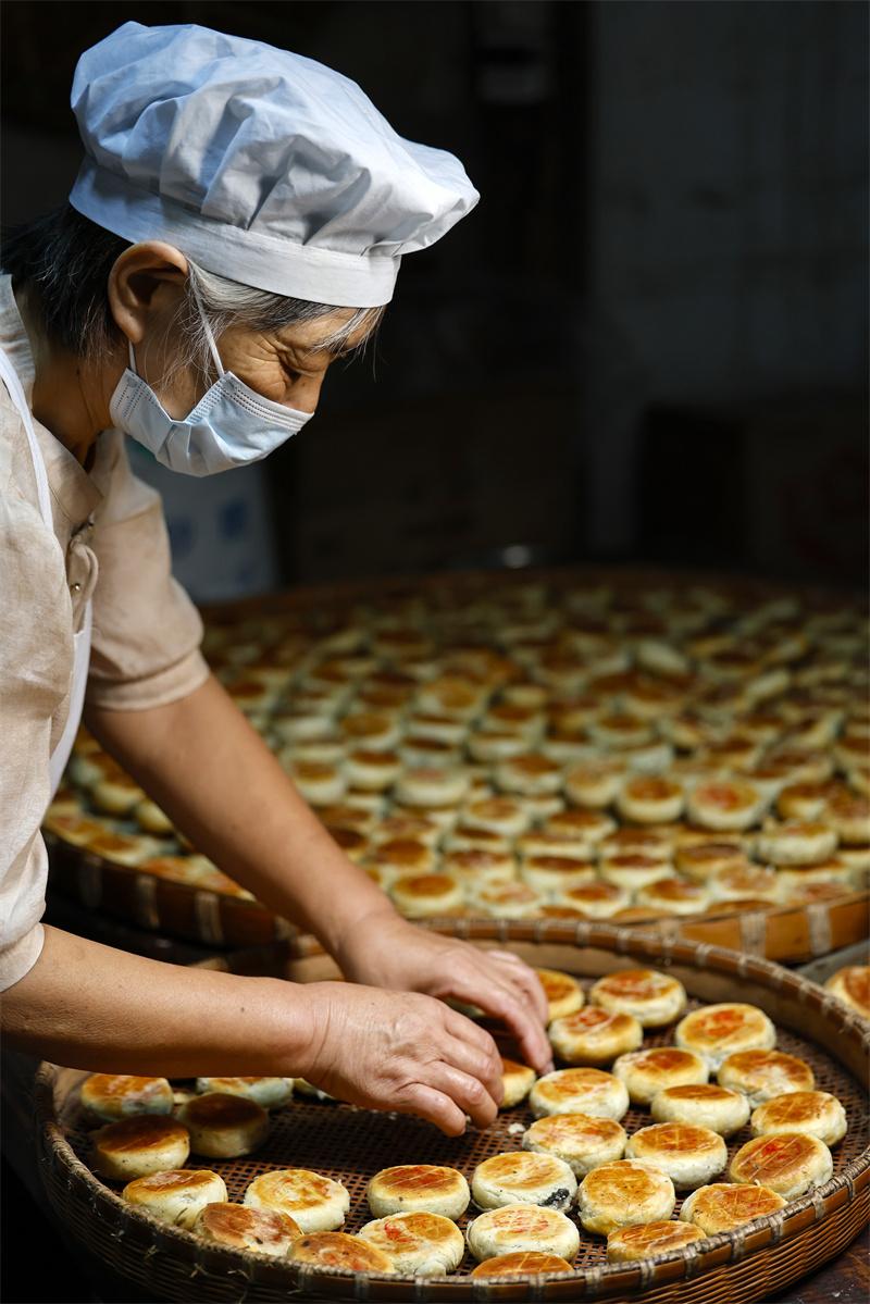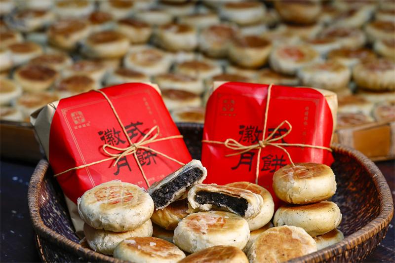 臨近中秋,在有著1700多年歷史的安徽省休寧縣萬(wàn)安老街內(nèi),制餅師傅經(jīng)過(guò)“制油酥、搟面皮、包餡、固形、蓋印和烘烤”等多道工序后,制作出外酥里糯、口感鮮美的“徽式麻仁月餅”,作為古徽州中秋佳節(jié)傳統(tǒng)糕點(diǎn),深受百姓喜愛(ài)。
