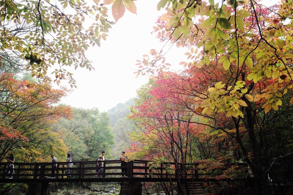 10月1日,游客在遼寧本溪老邊溝風景區(qū)內游玩。新華社記者 李鋼 攝