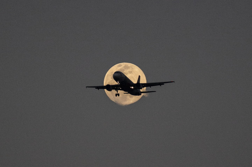 這是2023年3月6日在印度新德里拍攝的飛機(jī)和月亮。 新華社發(fā)(賈韋德·達(dá)爾攝)