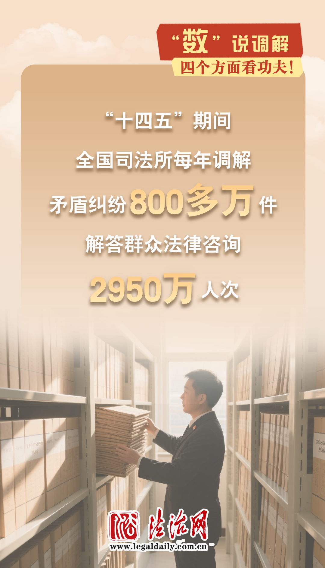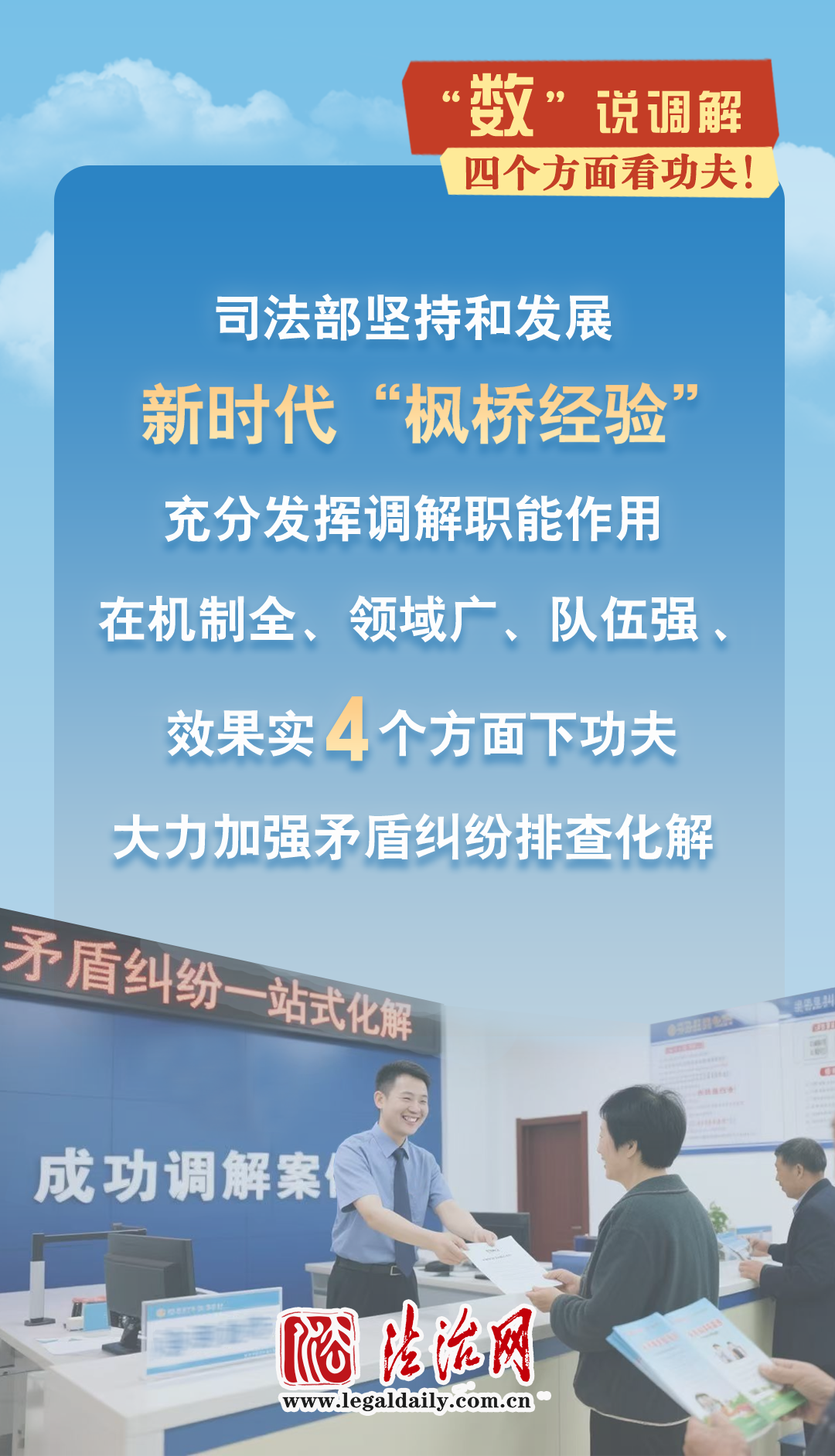 “十四五”期間,司法部堅持和發(fā)展新時代“楓橋經(jīng)驗”,充分發(fā)揮調(diào)解的職能作用,在機制全、領(lǐng)域廣、隊伍強、效果實四個方面下功夫,大力加強矛盾糾紛的排查化解,切實保障群眾合法權(quán)益,維護社會和諧穩(wěn)定。