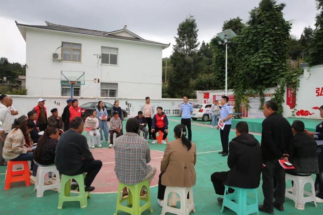 “鄉(xiāng)親們,中秋要到了,今天咱們一邊學(xué)法,一邊提前過(guò)節(jié)!”駐村民警譚垚的開(kāi)場(chǎng)白親切又實(shí)在,“咱們就聊聊田里的事、家里的事、鄰里間的事。懂了法,心里亮堂,這個(gè)團(tuán)圓節(jié)過(guò)得更踏實(shí)!”他先從鄉(xiāng)親們最關(guān)心的土地問(wèn)題說(shuō)起,結(jié)合臘寨村幾起真實(shí)的田邊地角糾紛,把《中華人民共和國(guó)土地管理法》《中華人民共和國(guó)農(nóng)村土地承包法》的相關(guān)規(guī)定講得明明白白?!巴恋厥窃蹅兊拿樱邪?jīng)營(yíng)權(quán)受法律保護(hù),鄰里之間多溝通、多商量,比紅臉吵架強(qiáng)?!彼貏e提醒大家土地流轉(zhuǎn)要簽規(guī)范合同,避免日后鬧矛盾。