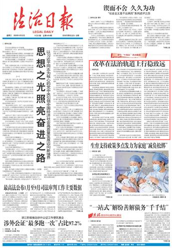 發(fā)展永無止境,改革未有窮期?!笆逦濉笔屈h的二十屆三中全會部署改革任務全面完成的關鍵時期,我們必須進一步處理好改革和法治的關系,更好發(fā)揮法治在凝聚改革共識、排除改革阻力、鞏固改革成果中的積極作用,堅持以制度建設為主線,確保改革在法治下破題、在法治軌道上推進,通過改革完善各方面制度,推動經(jīng)濟社會高質(zhì)量發(fā)展取得新成效,創(chuàng)造“中國之治”新輝煌。
