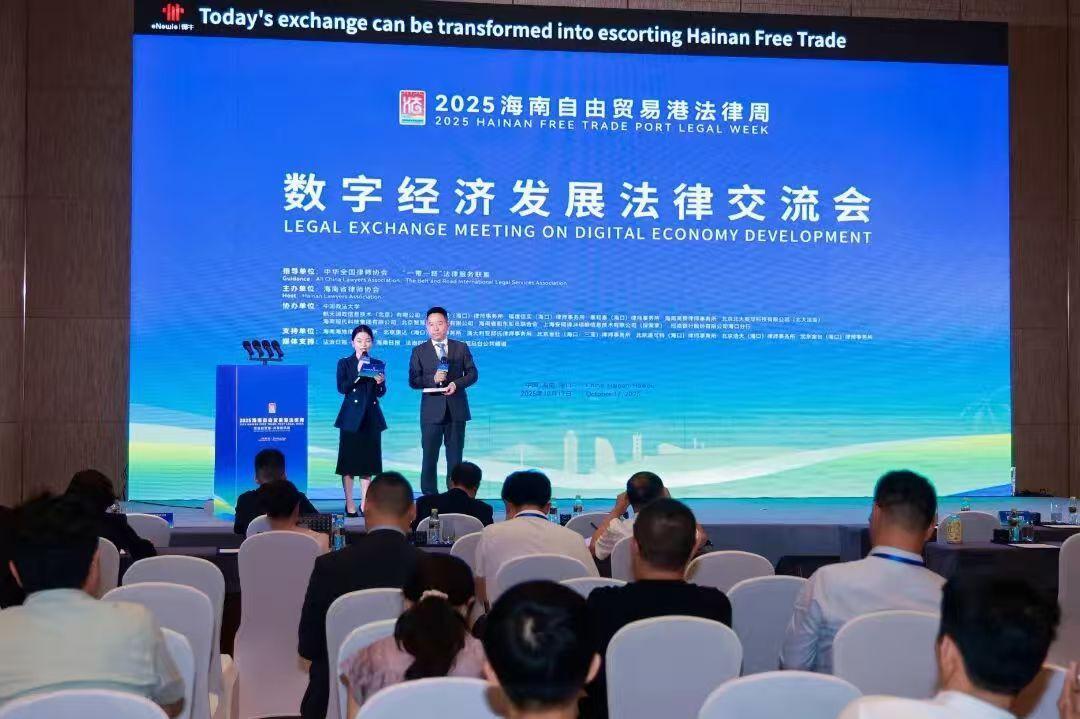 10月17日,2025海南自由貿(mào)易港法律周重要活動(dòng)之“數(shù)字經(jīng)濟(jì)發(fā)展法律交流會(huì)”在海口舉行。本次交流會(huì)聚焦數(shù)字經(jīng)濟(jì)浪潮下的法治保障議題,匯聚了學(xué)術(shù)界、法律實(shí)務(wù)界與國際相關(guān)領(lǐng)域?qū)<?,從全球視野到地方?shí)踐,從技術(shù)賦能到法治保障,共同為海南自貿(mào)港數(shù)字經(jīng)濟(jì)的創(chuàng)新發(fā)展建言獻(xiàn)策。