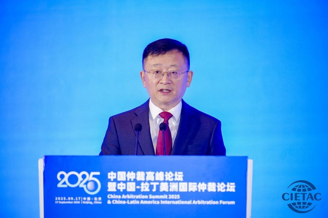 9月17日,2025中國仲裁高峰論壇暨中國—拉丁美洲國際仲裁論壇在北京舉辦。中國國際貿(mào)易促進委員會副會長聶文慧、司法部副部長武增、最高人民法院審判委員會副部級專職委員王淑梅、環(huán)太平洋律師協(xié)會主席Michael CHU出席開幕式并致辭,聯(lián)合國國際貿(mào)易法委員會秘書長Anna JOUBIN-BRET發(fā)表視頻致辭。中國國際經(jīng)濟貿(mào)易仲裁委員會副主任兼秘書長王承杰主持論壇開幕式。