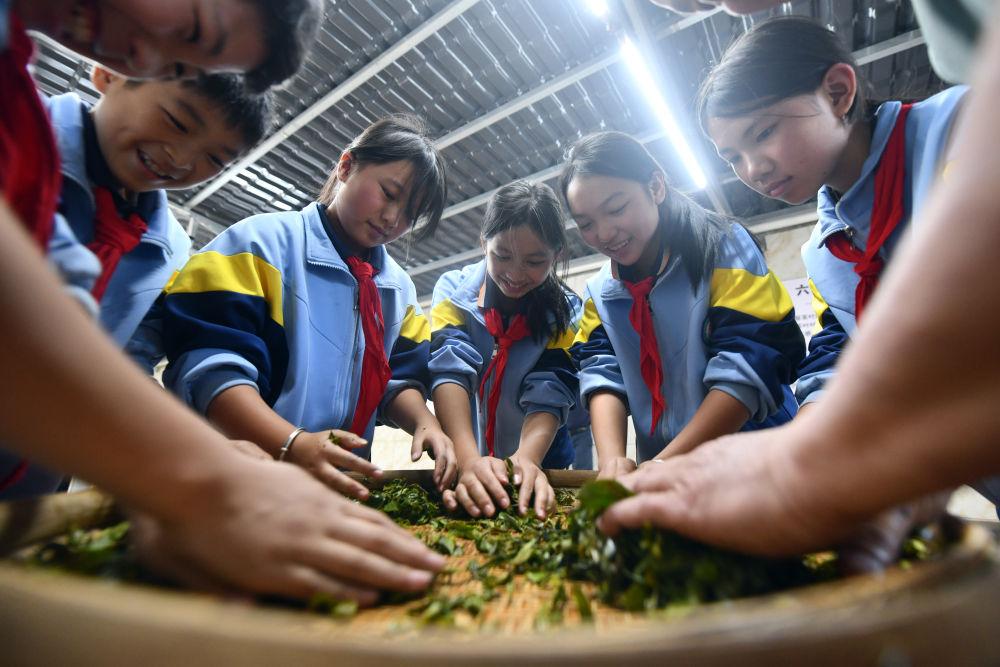 2024年12月3日,學(xué)生們?cè)趶V西梧州市蒼梧縣六堡鎮(zhèn)塘平小學(xué)學(xué)習(xí)制作六堡茶。廣西六堡茶已有1500多年的歷史,其制作工藝被列入第四批國(guó)家級(jí)非物質(zhì)文化遺產(chǎn)代表性項(xiàng)目名錄。近年來(lái),廣西圍繞打造千億元茶產(chǎn)業(yè)發(fā)展目標(biāo),深入實(shí)施綠色高效茶園建設(shè)、品牌提升和營(yíng)銷體系建設(shè)、產(chǎn)業(yè)融合和茶文化提升等多項(xiàng)工程,形成了以六堡茶為引擎,早春茶等特色優(yōu)勢(shì)茶協(xié)同發(fā)展的產(chǎn)業(yè)格局,茶產(chǎn)業(yè)煥發(fā)勃勃生機(jī)。六堡茶正沿21世紀(jì)海上絲綢之路運(yùn)達(dá)八方,香飄海內(nèi)外。2024年,廣西六堡茶產(chǎn)量達(dá)到4.3萬(wàn)噸,綜合產(chǎn)值超300億元。