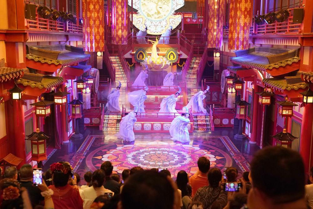 2024年5月19日,游客在西安長(zhǎng)安十二時(shí)辰景區(qū)觀看表演《霓裳羽衣舞》?!伴L(zhǎng)安十二時(shí)辰”主題街區(qū)將唐朝文化與現(xiàn)代旅游相結(jié)合,讓游客仿佛置身于千年前的長(zhǎng)安城。近年來(lái),西安積極推進(jìn)產(chǎn)業(yè)升級(jí)和文旅融合,以中華優(yōu)秀傳統(tǒng)文化創(chuàng)新創(chuàng)造活力助推經(jīng)濟(jì)社會(huì)高質(zhì)量發(fā)展,如大唐不夜城一樣火爆“出圈”的文旅項(xiàng)目層出不窮。