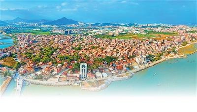 若是從空中俯瞰福建泉州南安市石井鎮(zhèn)奎霞村,便會(huì)看見這樣迷人的風(fēng)景——一側(cè)是蔚藍(lán)的海水,一側(cè)是連棟成片的紅磚古厝,其間點(diǎn)綴青白色的石基、雪白的山花和綠色琉璃花飾,碰撞出一幅色彩鮮明的畫卷。2023年,奎霞村被列入第六批中國傳統(tǒng)村落名錄。