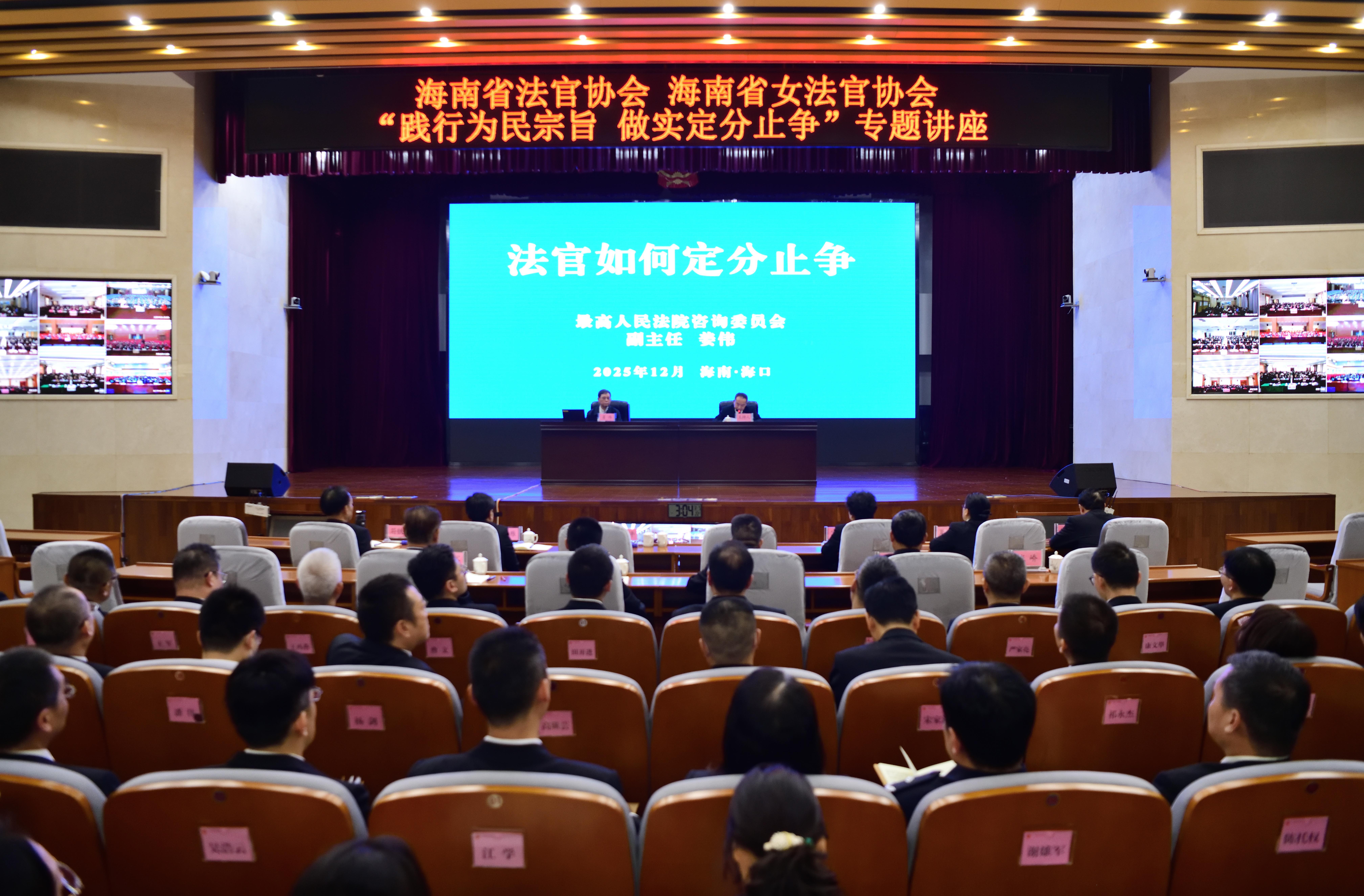 12月5日,由海南省法官協(xié)會、海南省女法官協(xié)會聯(lián)合主辦的“踐行為民宗旨,做實定分止爭”研討會暨專題講座在海南省高院舉行。最高人民法院咨詢委員會主任李少平,海南省法官協(xié)會會長、海南省高院黨組書記、院長戴軍分別致辭。海南省人大代表王玉玲、海南省政協(xié)委員王佳參加活動。