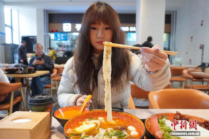 中新社河南安陽12月11日電 題:“甲骨文面條”走紅 游客吃面“沾福氣”