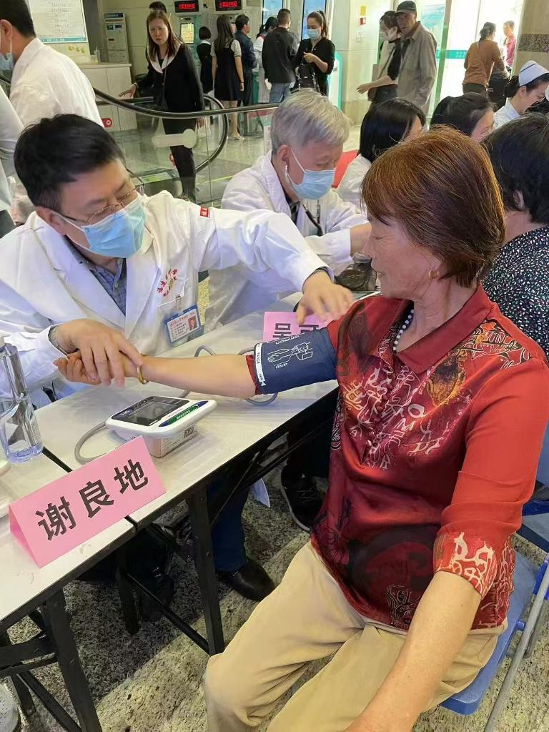 2025年世界高血壓日,福建省高血壓研究所所長謝良地為群眾義診。(受訪者供圖)