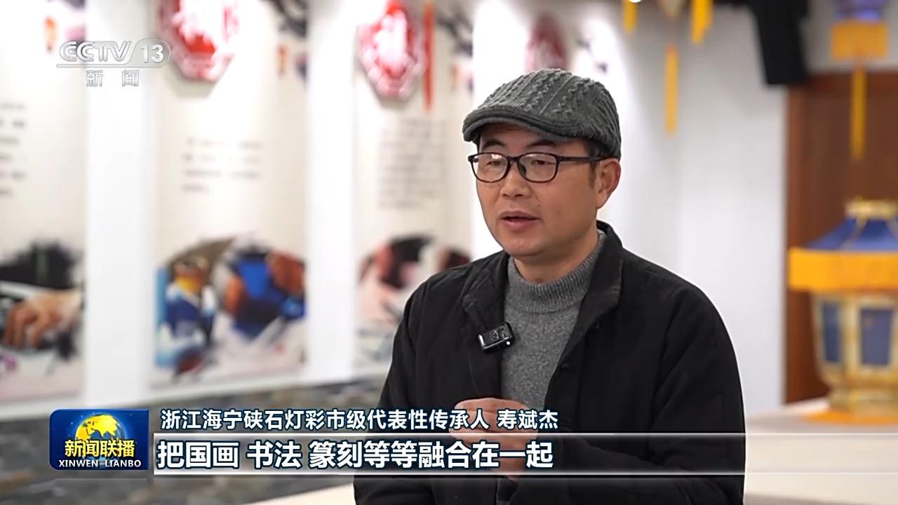 浙江海寧硤石燈彩市級代表性傳承人 壽斌杰:主要是通過針刺把國畫、書法、篆刻等融合在一起。在夜晚的燈光的透射下,會達到一種非常奇幻的,而且是萬眼羅燈的效果。