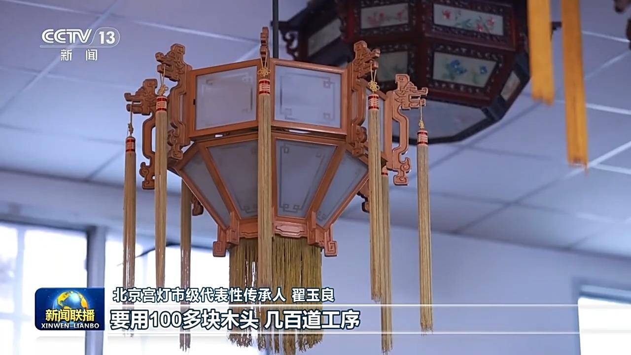 北京宮燈市級代表性傳承人 翟玉良:一只宮燈要用100多塊木頭,幾百道工序,包括這個地方,跟古建筑的雀替完全是一樣的。