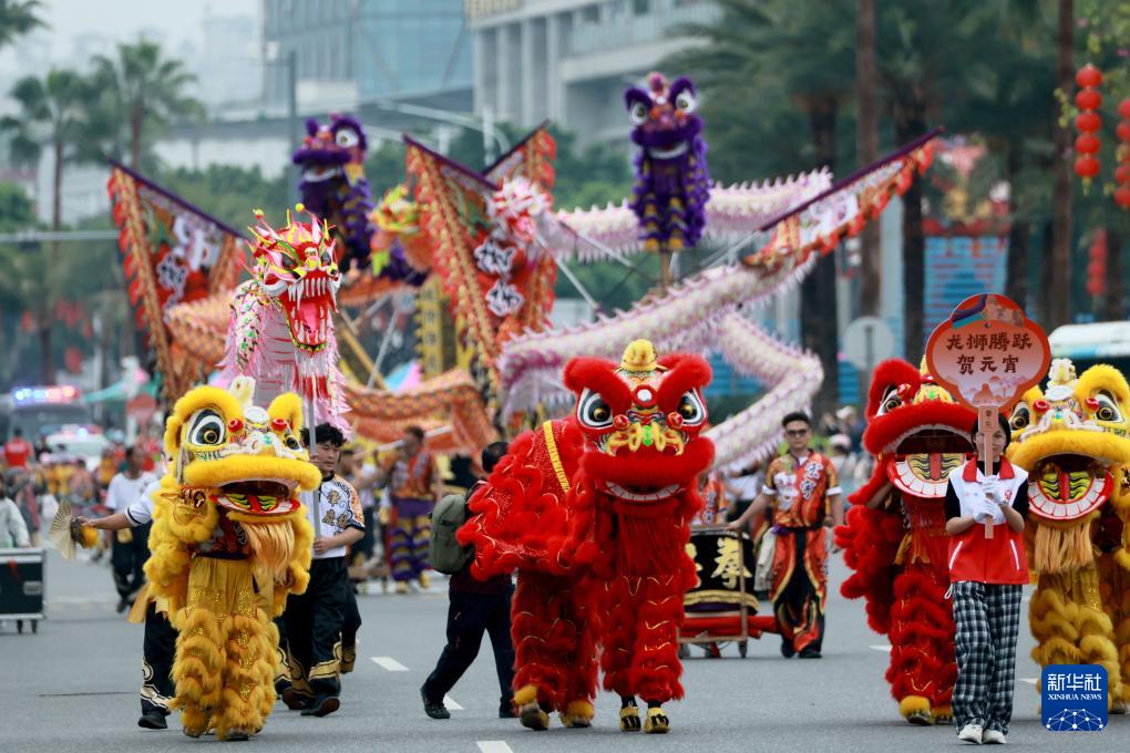 3月1日,廣東省肇慶市端州區(qū)舉行“廣府風(fēng)韻匯星湖 多彩非遺鬧元宵”2026肇慶廣府文化廟會(huì)非遺巡游展演活動(dòng)。這是南獅表演。