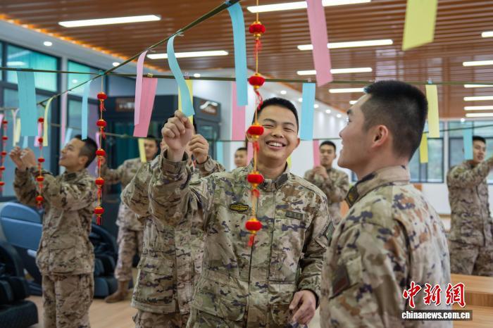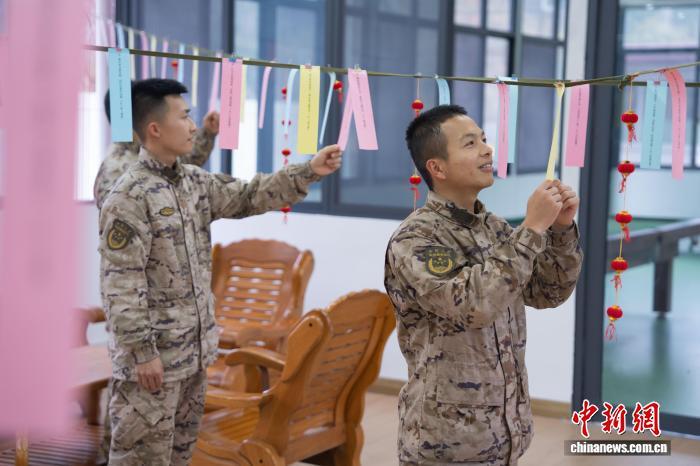 圖為武警官兵猜燈謎。戴申澳 攝