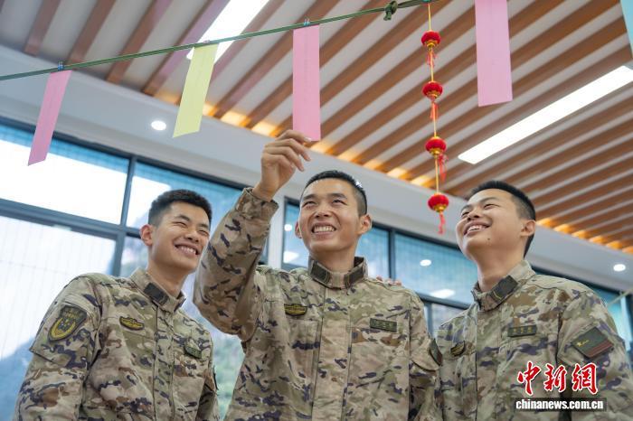 圖為武警官兵猜燈謎。施晨洲 攝