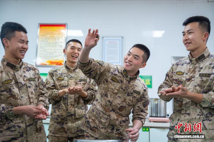 臨近元宵節(jié),武警廣西總隊(duì)桂林支隊(duì)精心組織猜燈謎、包湯圓、親情通話等暖心活動(dòng),讓官兵們?cè)谙楹头諊袣g度佳節(jié),進(jìn)一步凝聚軍心、增進(jìn)戰(zhàn)友情。圖為武警官兵在食堂內(nèi)制作湯圓餡料。戴申澳 攝