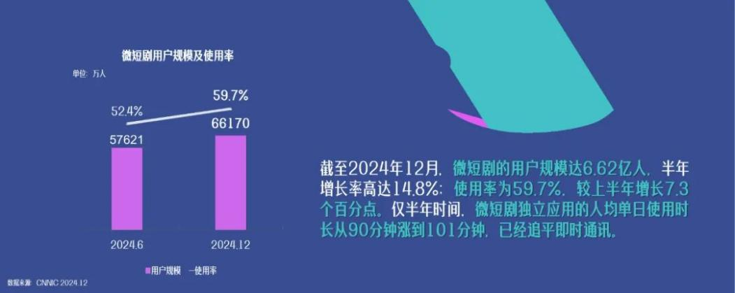 據(jù)《中國網絡視聽發(fā)展研究報告(2025)》顯示,截至2024年12月,微短劇用戶規(guī)模達6.62億人,使用率為59.7%,市場規(guī)模突破500億元,2025年預計已破千億元。微短劇的爆發(fā)式增長背后,關于內容審核、未成年人保護、精品化發(fā)展的討論,正在兩會會場內引發(fā)深度思考。