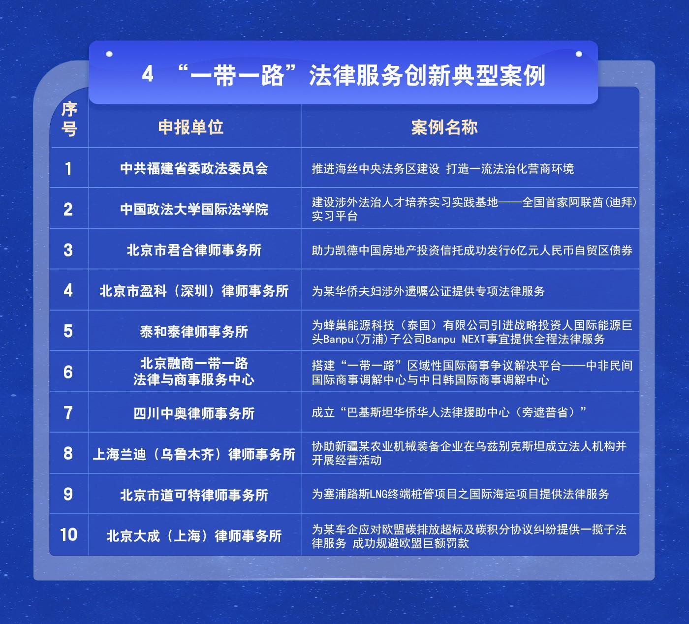 “一帶一路”法律服務(wù)創(chuàng)新典型案例名單