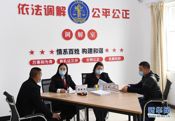 3月28日,新疆阿勒泰市人民法院司法輔助中心工作人員在調(diào)解矛盾糾紛。