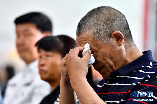6月8日,在“認(rèn)親,我們在行動”濟南主會場,吳某林在擦拭眼淚,他即將與被拐多年的兒子相認(rèn)。新華社記者 郭緒雷 攝