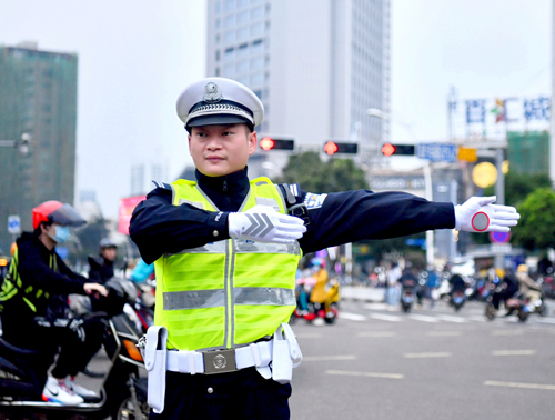 圖為2022年元旦期間,王偉堅(jiān)守崗位指揮交通