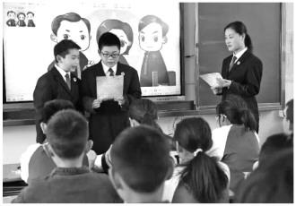 近日,河南省內(nèi)鄉(xiāng)縣人民檢察院檢察官走進(jìn)轄區(qū)小學(xué),圍繞“普法進(jìn)校園 法治護(hù)成長(zhǎng)”主題,融合孩子們喜歡的動(dòng)漫形式講授防范校園欺凌法治課。圖為檢察官用互動(dòng)體驗(yàn)式教學(xué)方法,邀請(qǐng)兩名同學(xué)換上檢察制服,化身“小小檢察官”,互換角色,分享感悟。