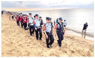 進(jìn)入夏季以來,海南省公安廳海岸警察總隊(duì)加強(qiáng)顯性用警,警力下沉一線,提高見警率管事率,不斷細(xì)化方法措施,力保轄區(qū)景區(qū)、港口平安和轄區(qū)群眾、游客安全。圖為??谑泄簿置捞m分局紅島海岸派出所民警和紅海義警隊(duì)伍開展治安巡邏。